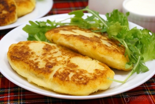 Из картофельной массы сформировать небольшие лепешки. Выложить на доску присыпанную мукой.