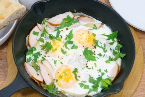 Яичница с курицей, рецепт, как приготовить, пошаговый рецепт с фото, приготовление яичницы с курицей