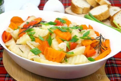 Овощи запеченные с постным маслом в духовке готовы. Можно подавать к столу.