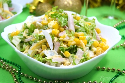 Новогодний салат с кальмарами «Сказочный берег» готов. Можно подавать к новогоднему столу.