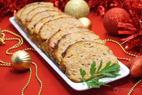 Праздничный мясной террин готов. Выложить на блюдо и подавать к праздничному столу.