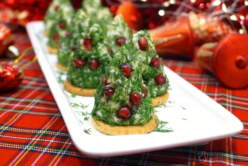 Закуска на крекерах «Ёлочки-иголочки» готова. Можно подавать к праздничному столу.