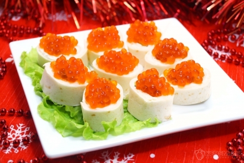 Рулетики из лаваша с красной икрой готовы. Можно подавать к праздничному столу.