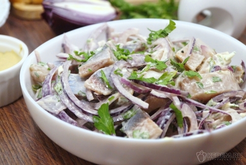 Прекрасный способ разнообразить классическую закуску из сельди. Горчичный маринад, в который доставляется лук и майонез, не только смягчает рыбу, но и придает ей благородную остроту и легкую кислинку. Селедка готовится всего 20 минут, что делает ее идеальным вариантом для внезапного визита гостей. Время приготовления 20 минут