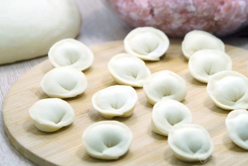 Достать тесто из пакета. Тесто для пельменей готово, можно приступать к лепке пельменей.