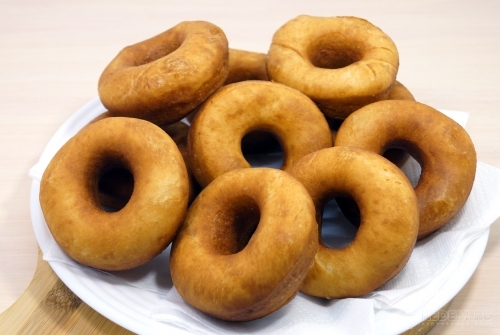 Вынуть тесто из пакет и обмять. Можно готовить пончики.