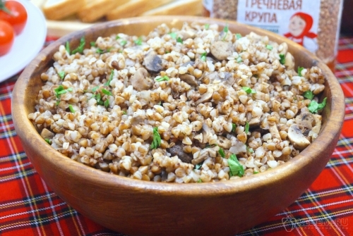 Гречка с грибами и луком готова. Выложить в глубокое блюдо или разложить по тарелкам и подавать к столу.