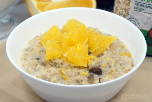 Овсяная каша с апельсином и изюмом готова. Можно подавать к столу.