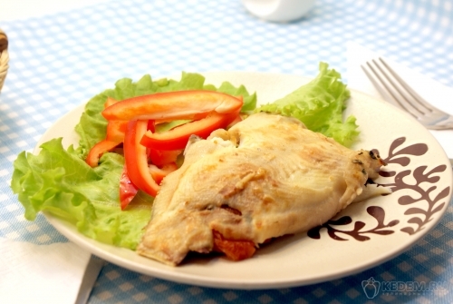 Смазать маслом и запечь в фольге при 200-х градусах С в течении 15 мин.