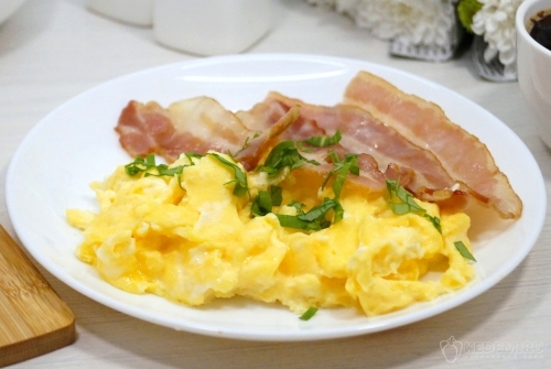 Скрэмбл с беконом готов. Можно подавать к столу.