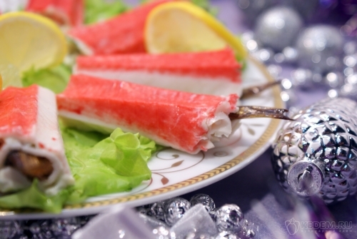 Крабовые палочки хорошо разморозить. До комнатной температуры.