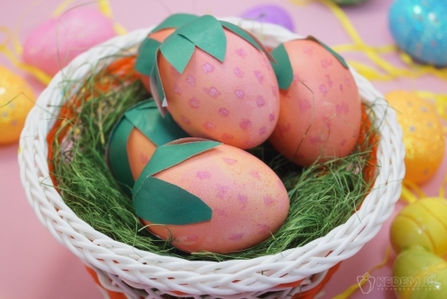 Яйца крашенные «Ягодки» готовы. Оформите пасхальную корзинку и угощайте ваших непосед.