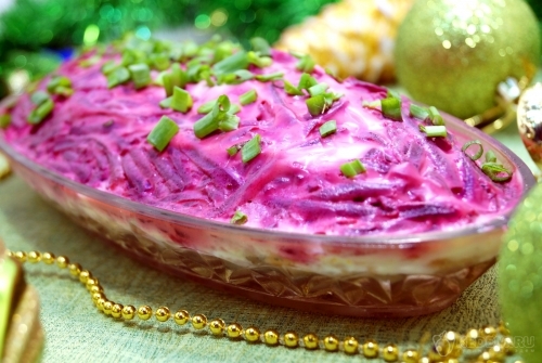 Селедка под шубой с яблоком готова. Подавать к праздничному столу.