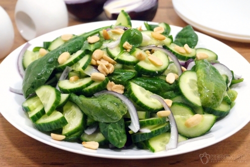 Салат Зеленый великан с огурцом и шпинатом готов. Можно подавать к столу.