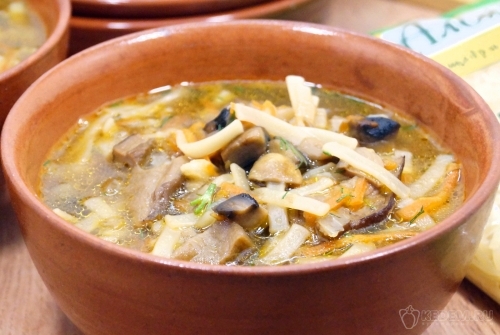Грибная юшка с лапшой готова. Разлить по тарелкам и подавать к столу.